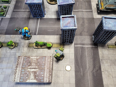 Rappel : l'attaquant JMD doit franchir traverser mes lignes et sortir par ma zone de déploiement. Au final même si l'attaquant possède plus de points ce n'est pas si simple pour lui. Je mène pas trop mal la partie et je réussis à atteindre la moitié de mon objectif (détruire ou cripple 4 Mechs ennemis). Sauf qu'après un tour catastrophique en terme de tirs je ne réussit pas à éliminer 2 Mechs restant...et donc je perd.